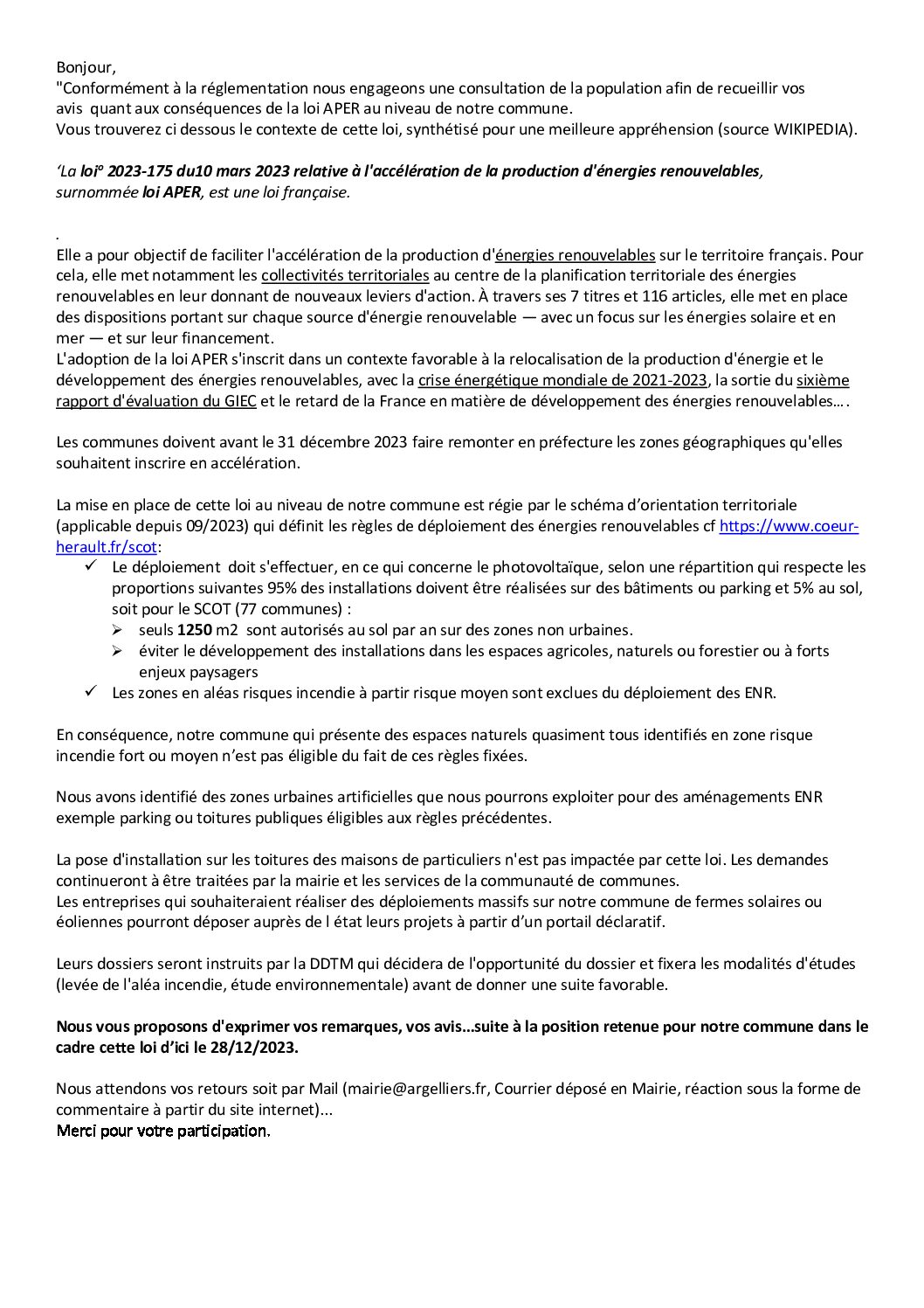 Accueil Consultation sur la loi APER sur les énergies renouvelables par Thierry Aillaud Lien sur la concertation