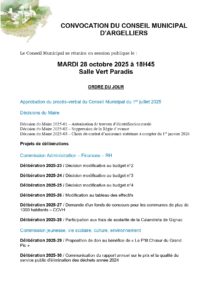 Prochain Conseil Municipal : mardi 28 octobre 18h45 à la Salle Vert Paradis