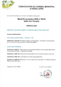 Réunion du Conseil Municipal le 18/11 à 18h30