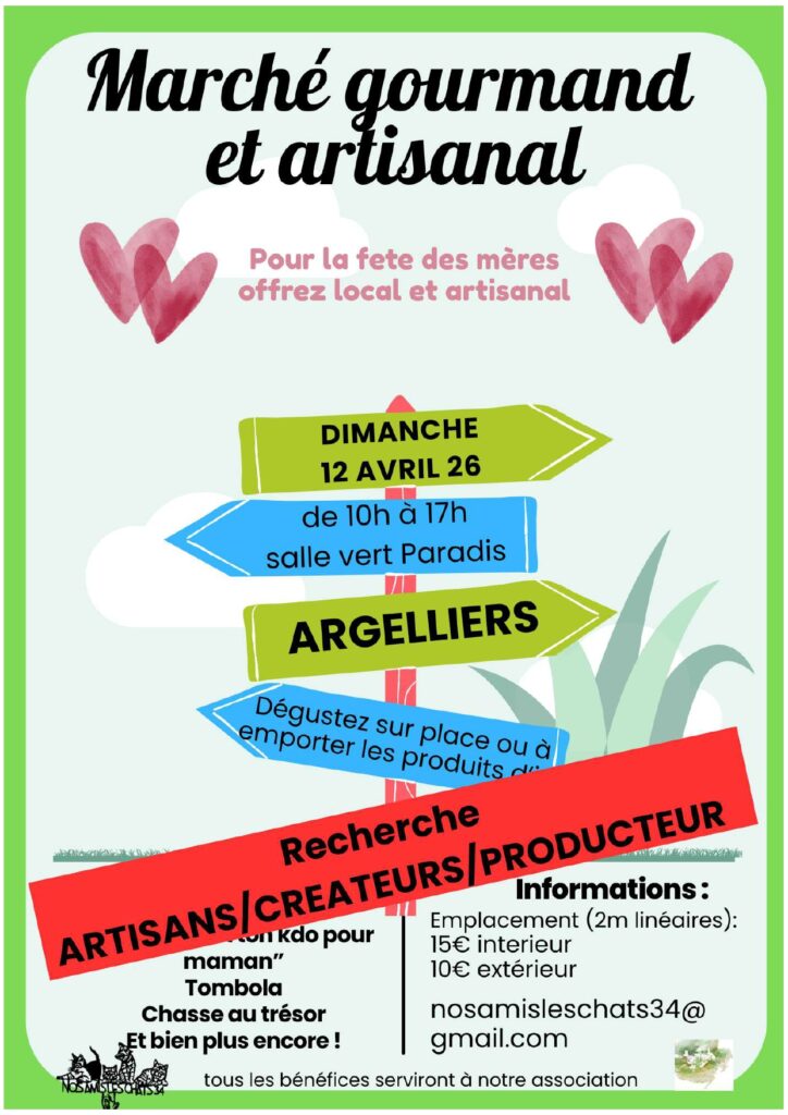 Pour son marché annuel, l’association nos amis les chats 34 recherche: