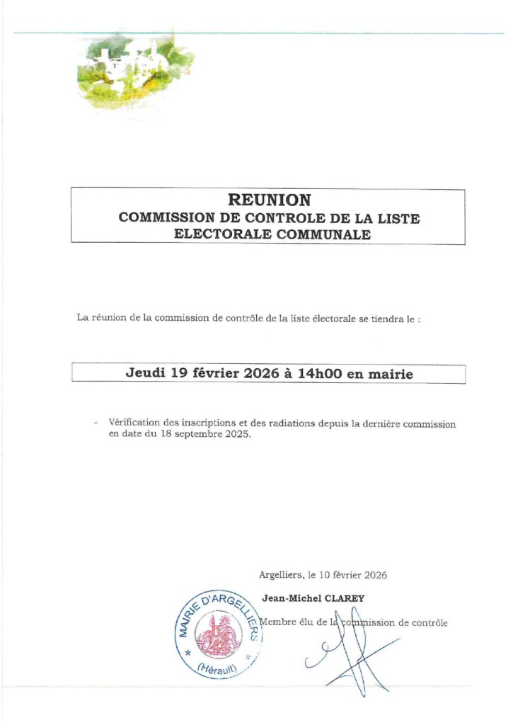 Réunion de la Commission de contrôle de la liste électorale le 19/02 à 14h