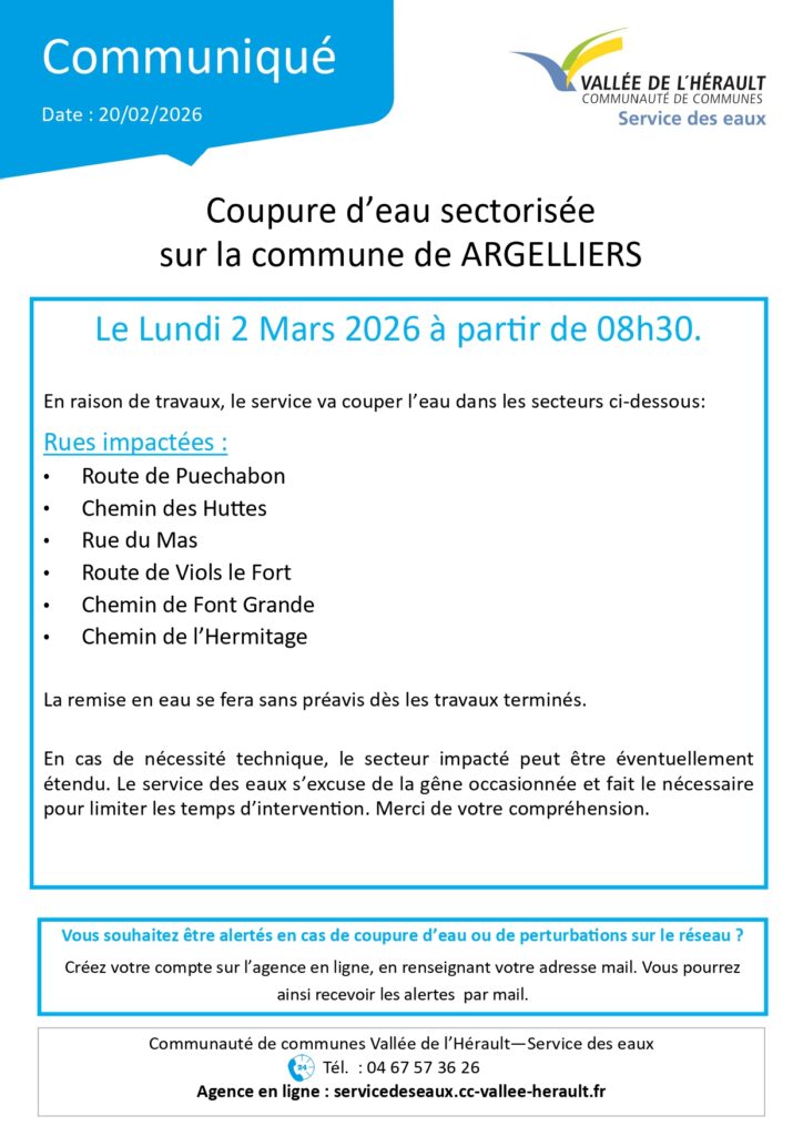 Coupure d’eau le 02/03