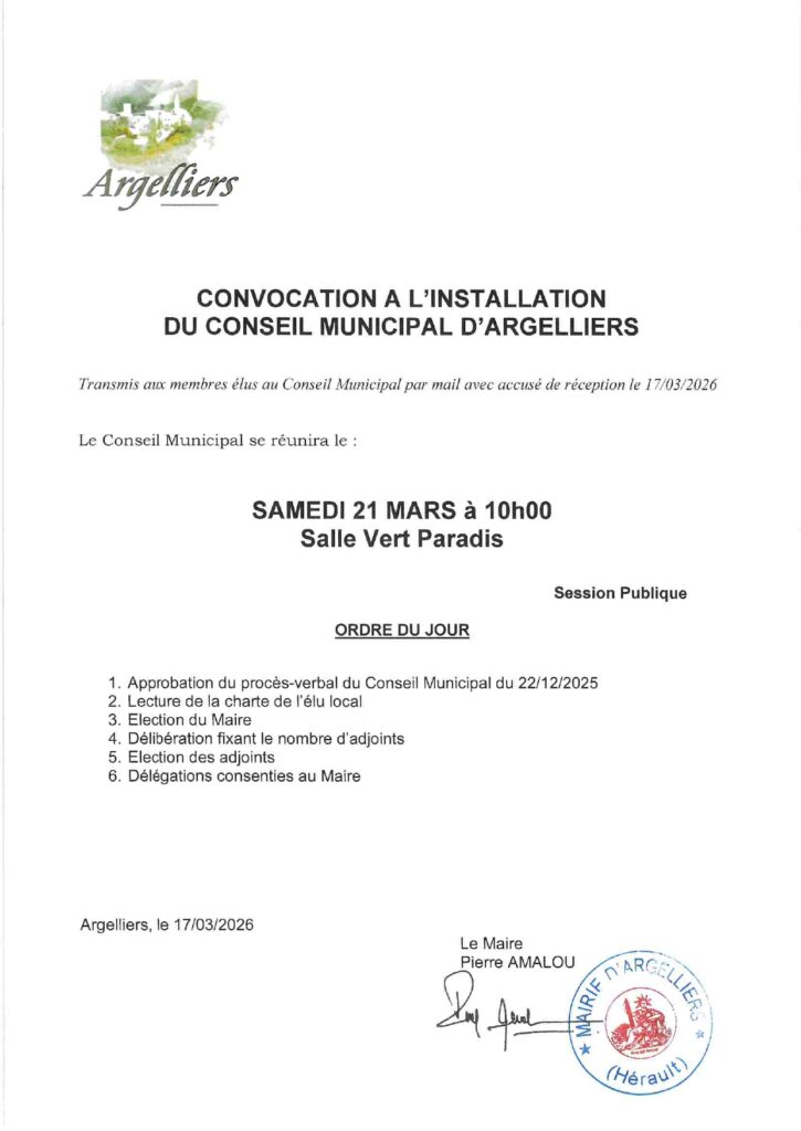 Conseil Municipal d’installation- le 21 mars 2026 Salle VP