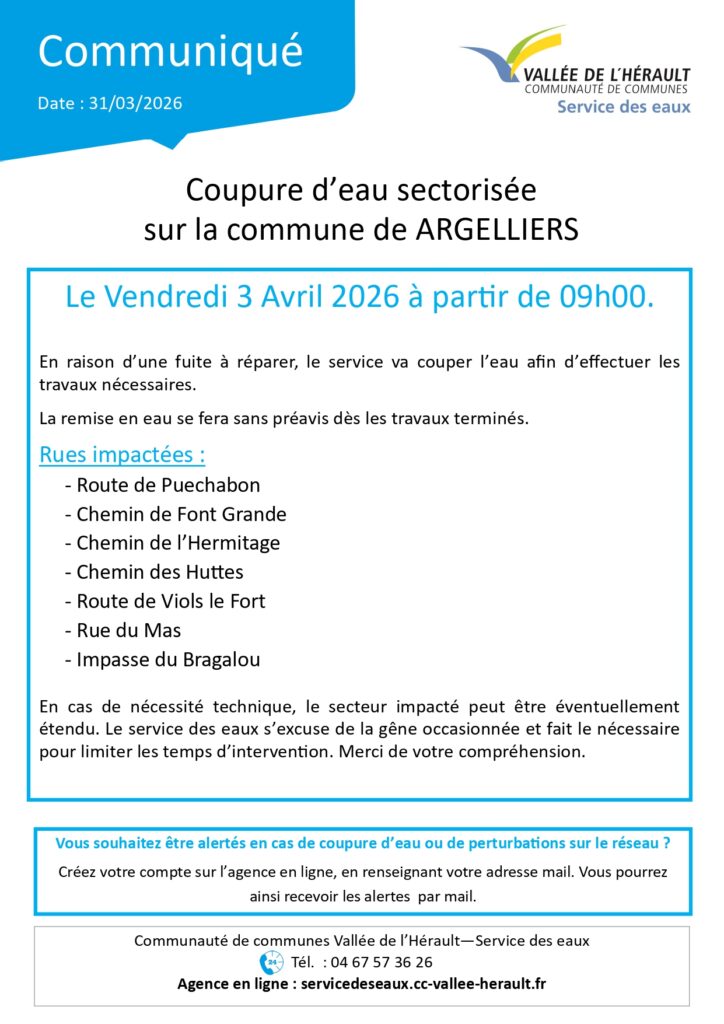 Coupure d’eau le vendredi 3 avril