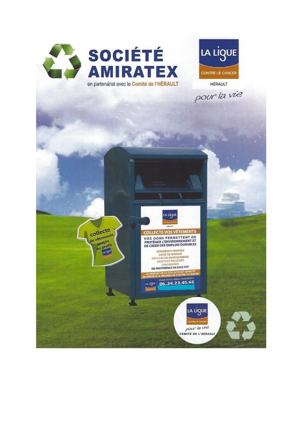 Recyclage des vêtements Les containers de recyclage de vêtements sont positionnés: Contre le Mur du cimetière au village Proche de …